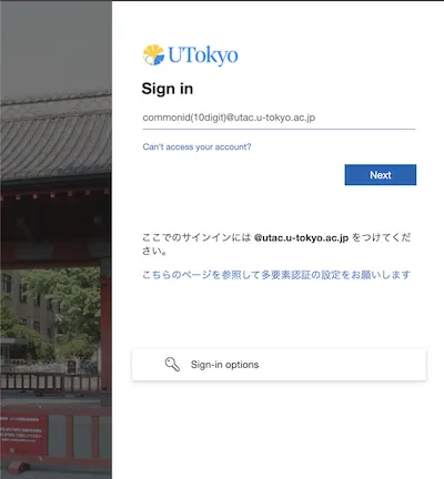 • If “Sign in” (“サインイン” in Japanese) is displayed below the Microsoft or the UTokyo logo