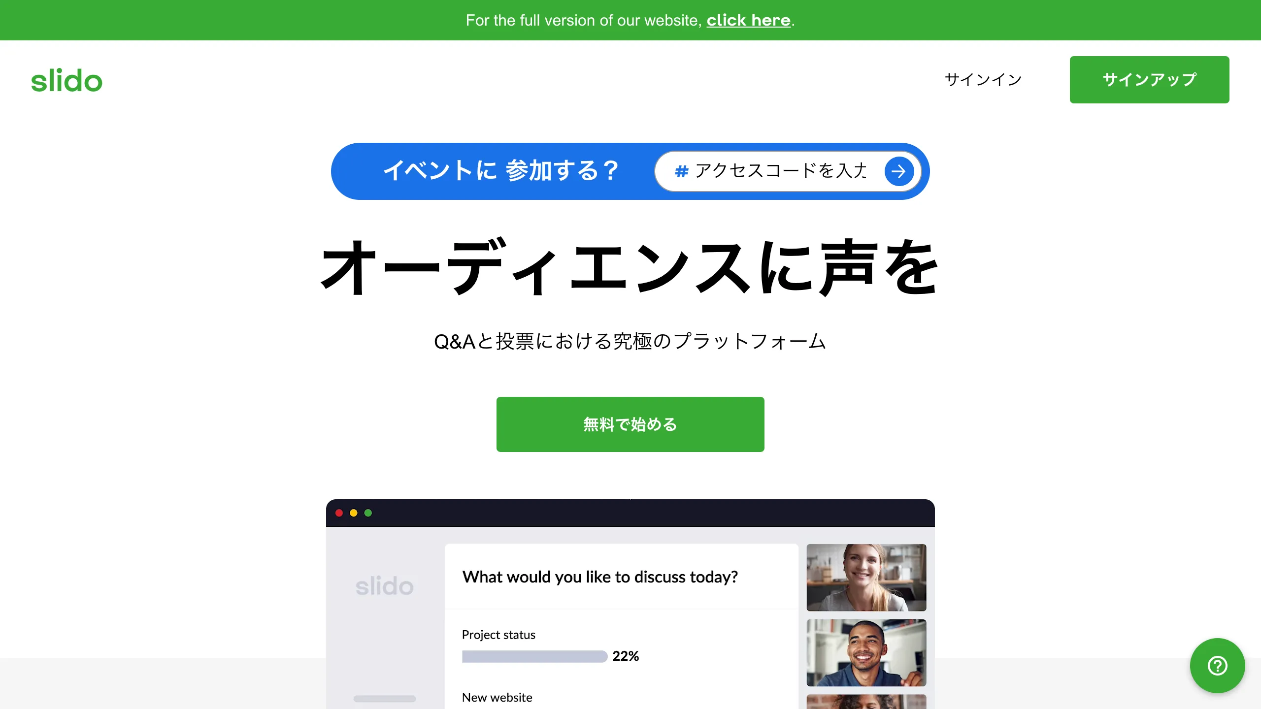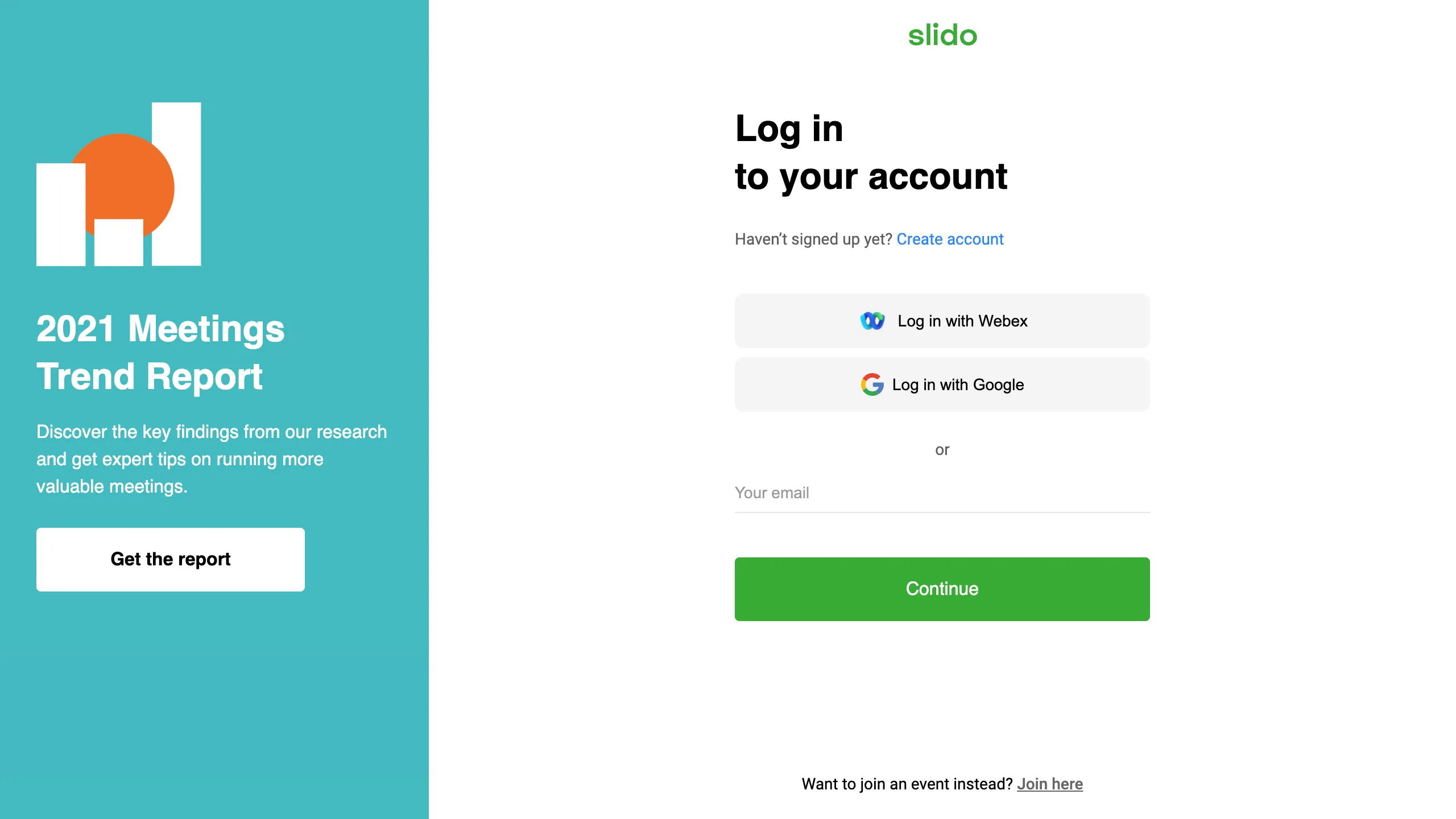 自身でイベントを主催する場合は,Slidoへのログインが必要です.イベントに参加するだけであれば,この手順は必要ありません.