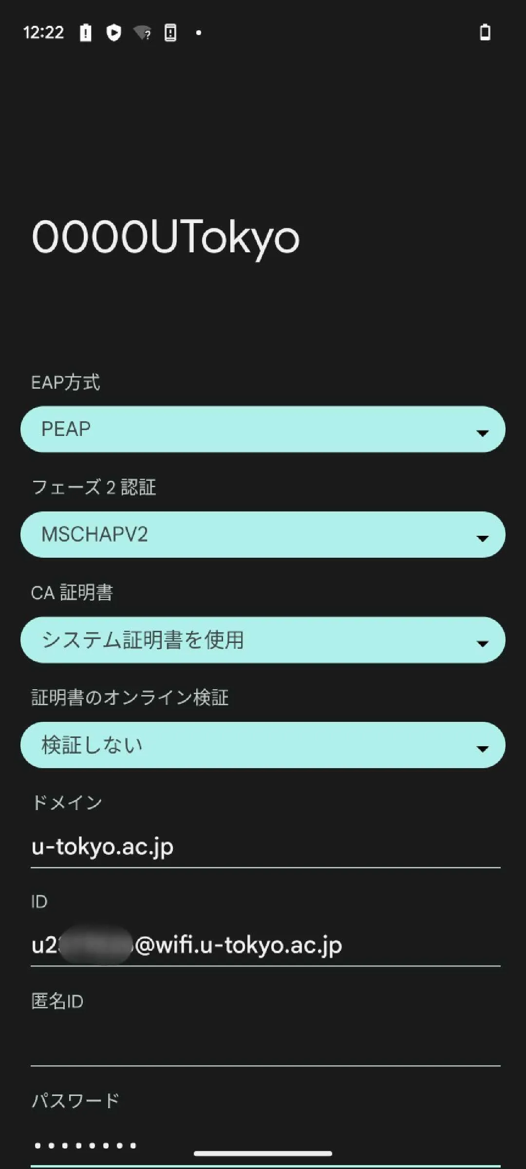 パスワードUTokyo Wi-Fiのパスワードを入力してください