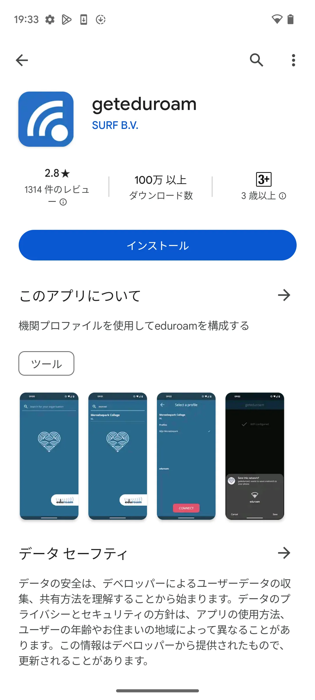 1. geteduroam」というアプリをGoogle Playストアからインストールしてください.